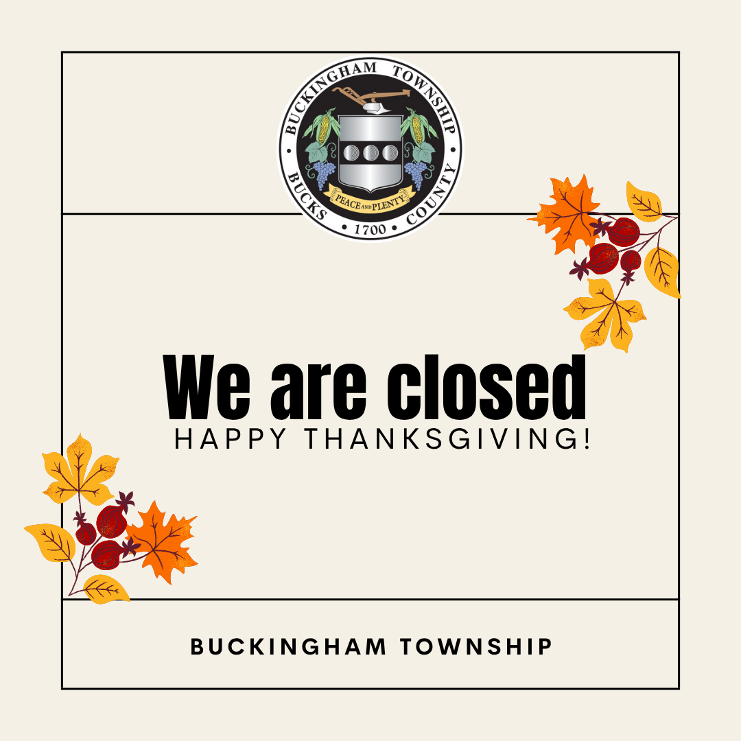 As we gather to celebrate Thanksgiving, Buckingham Township extends warm wishes to all our residents, friends, and neighbors. This year holds special meaning for our community, as we proudly celebrate Buckingham’s 325th anniversary—three and a quarter centuries of history and the remarkable people who make this township home.
